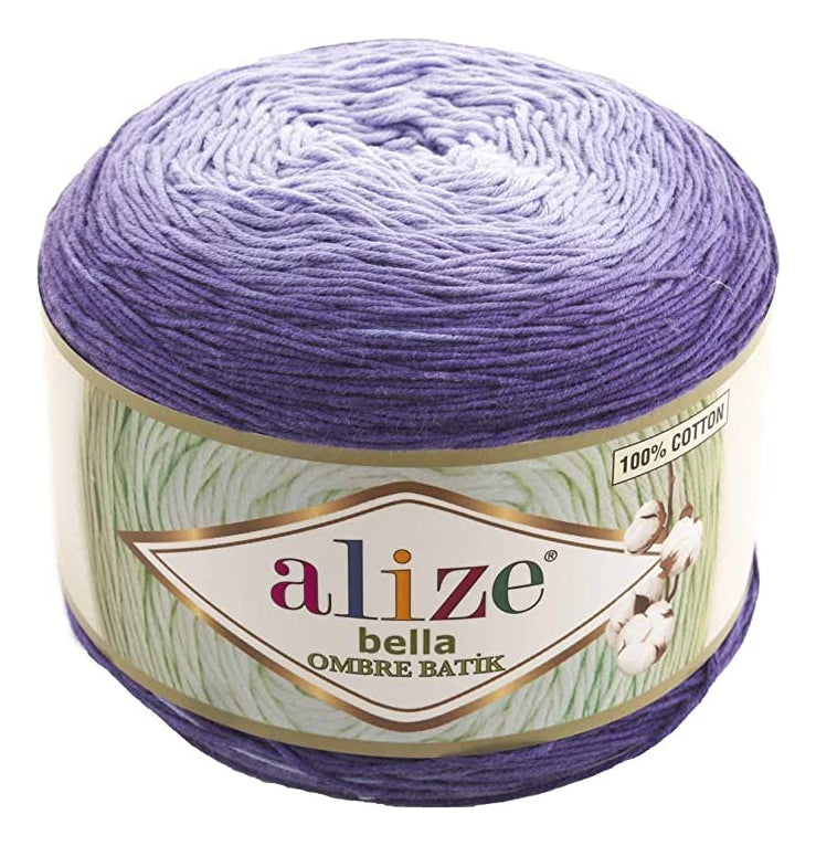 El Algodón Bella Ombre Batik Alize es un ovillo de 250 g de peso y 900 m de largo, perfecto para proyectos de tejido fino.