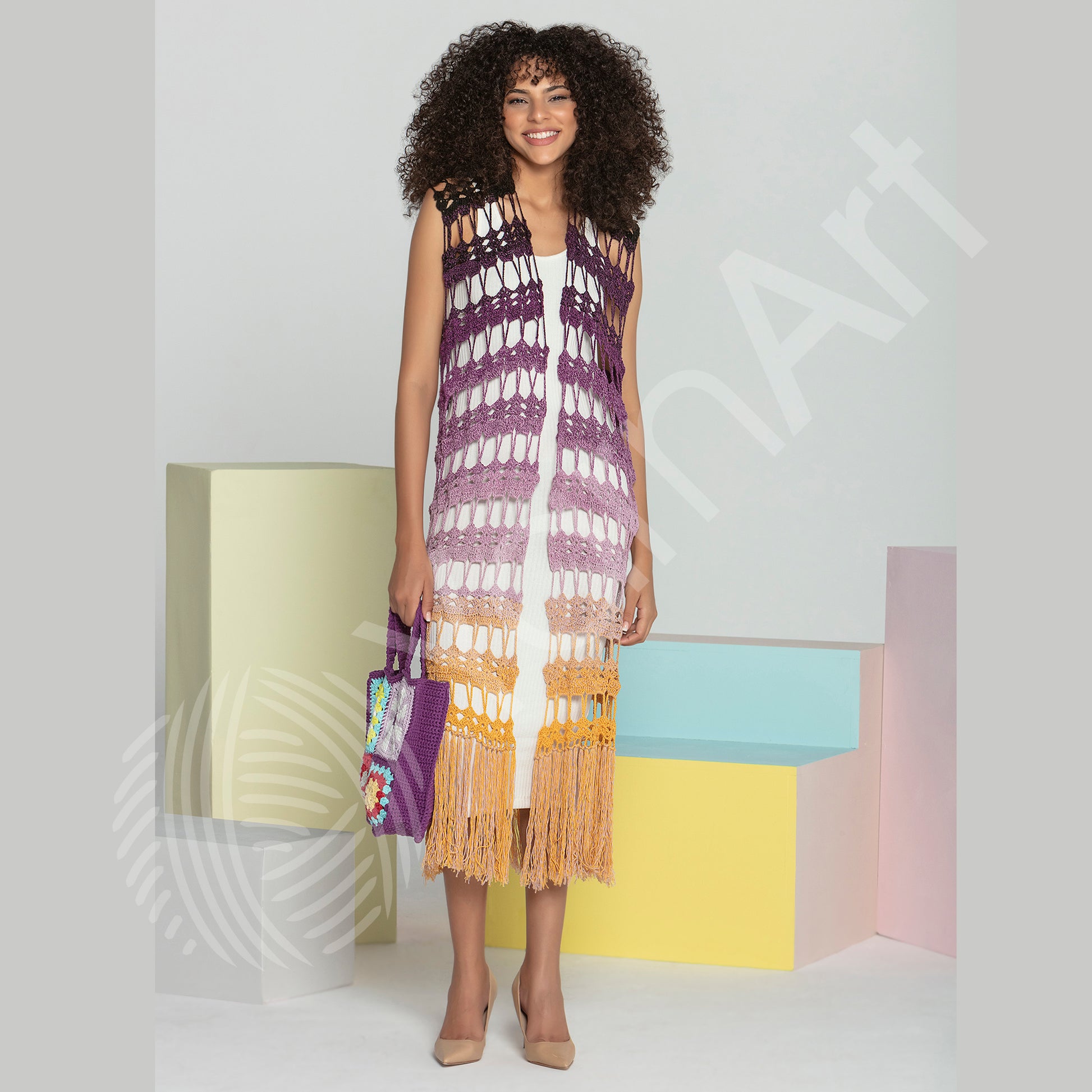 Hilado de 4 hebras que va cambiando de color una por una (transición lenta), haciendo que sea un degradado muy sutil. Ideal para chales por su suavidad y caída, pero puede ser usado en poleras, sweaters, etc. De gran rendimiento, con 1 ovillo puedes tejer una prenda completa.